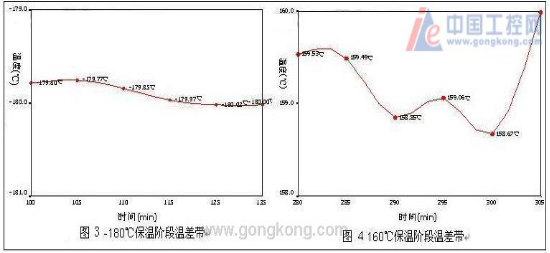 5、控溫結果與分析:深冷箱在-180℃**大溫差為0.97℃,**小溫差為0.21℃;在160℃時**大溫差為1.35℃,**小溫差為0.88℃;具體溫差帶如下圖3、4。