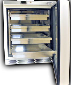 用于血庫的自動除霜冰箱中的四個滑動抽屜具有88個血袋的組合存儲容量。 鋁內部易于清潔,基座安裝的強制空氣前端呼吸制冷系統(tǒng)允許機柜封閉在兩側。 其空冷冷凝裝置配有過濾網(wǎng),也便于維護。